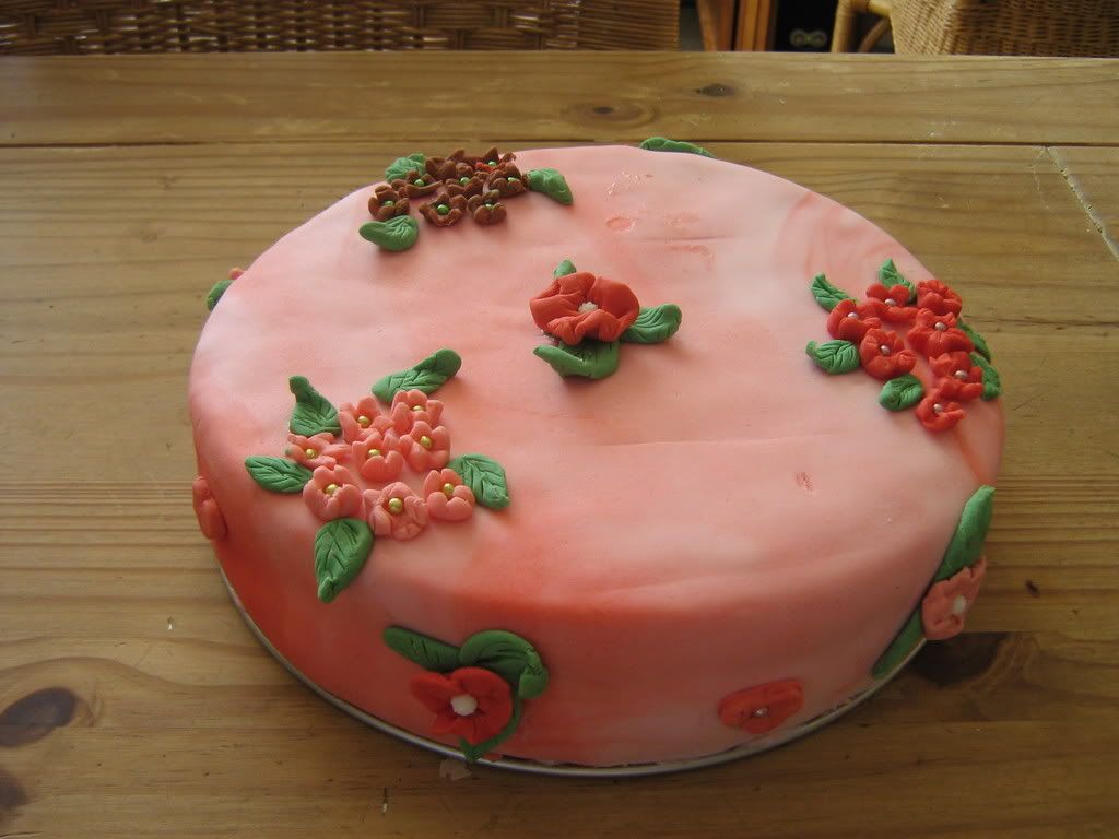 nou hier is ie dan mn eerste taart, vanmorgen samen met mn nicht aan knutselen geweest zij heeft er ook een gemaakt zal er ook wel op komen te staan.
